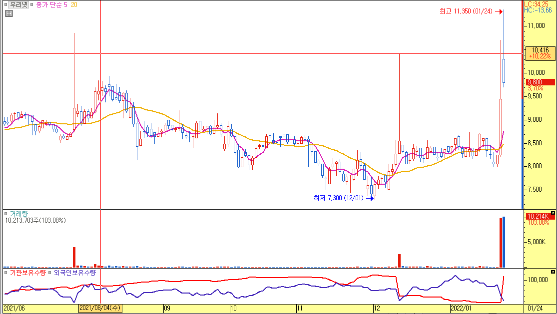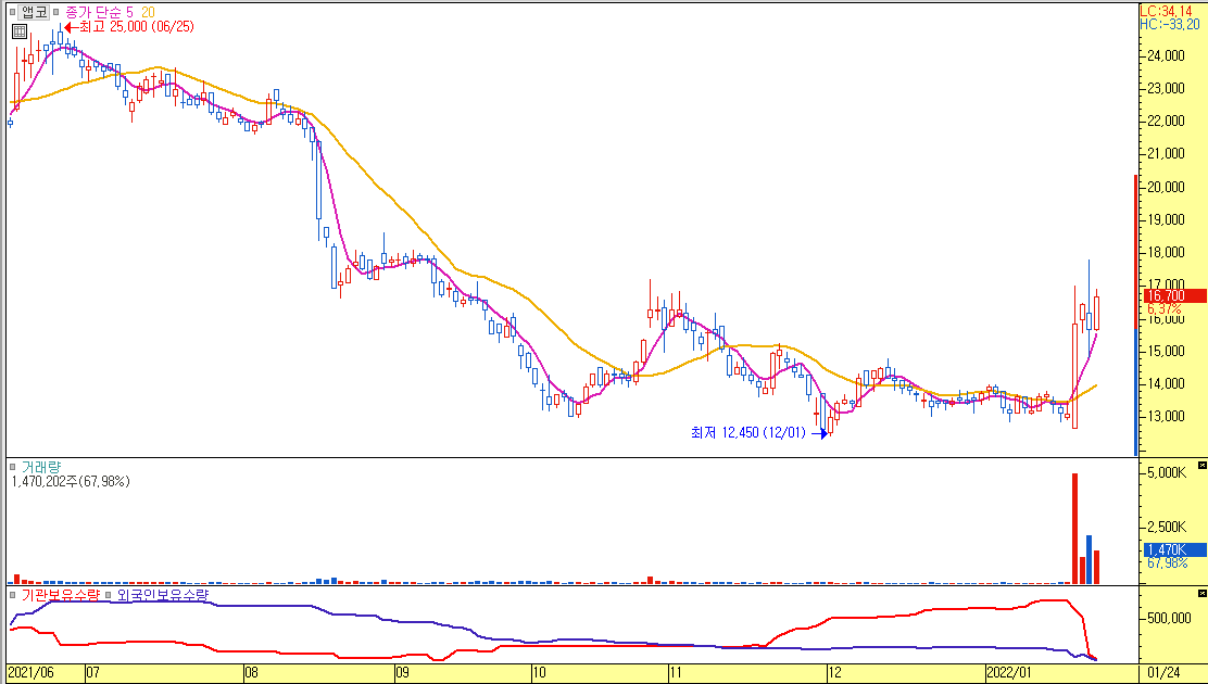 오늘 터트린 거래량과 상승률이 고무적이라 관찰..