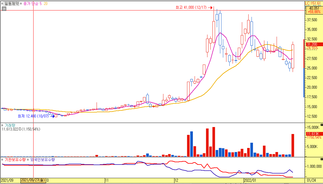 제약바이오를 선호하지 않고, 제가 좋아하지 않는 차트 모양이지만..