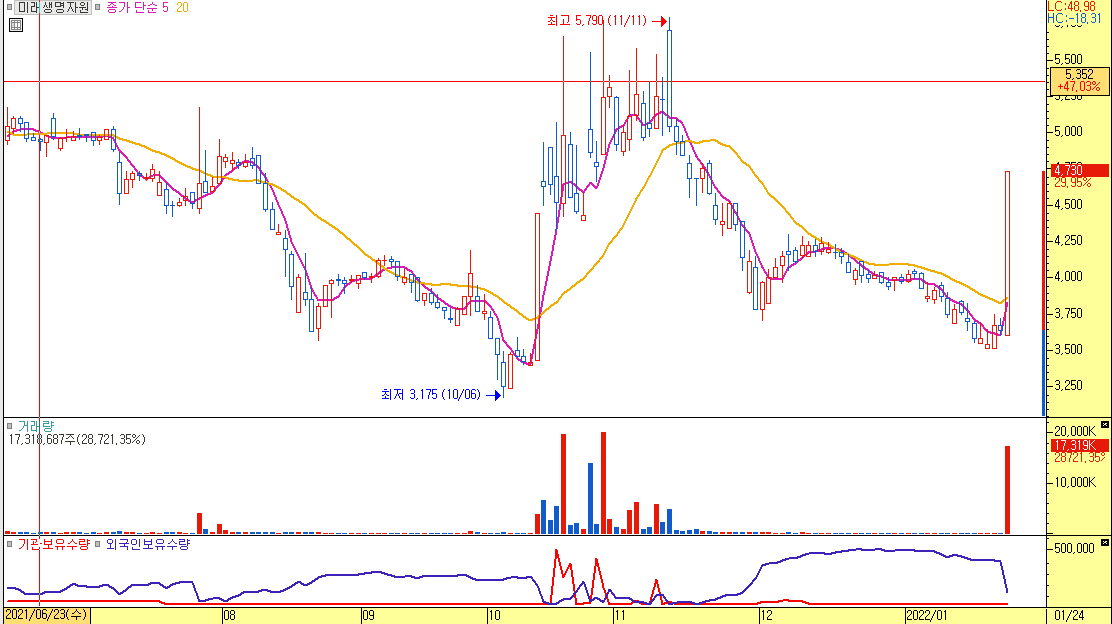 2.미래생명자원- 러시아, 우크라이나 침공 시 식량 문제 발생 우려 부각에 일부 사료 테마 상승 속 상한가